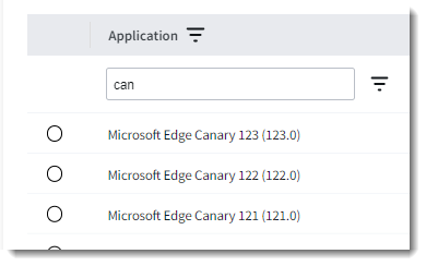 icon next to this field to set up a more refined filter). In the following example, the Application column is filtered by the string “can”.