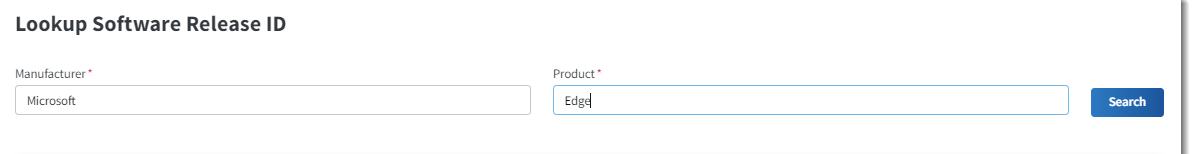 The Lookup Software Release ID slideout is opened. (If a software release ID is currently assigned to the bucket, this ID is displayed at the top of the slideout.)