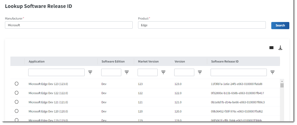 Click Select to return to the bucket definition. The Software Release ID field displays the correct Technopedia release ID for the application you selected.