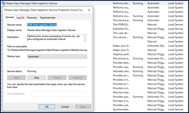 Flexera One’s SaaS Management Data Ingestion Service is not installed in the Default mode. You will not be able to schedule CSV and API tasks using Windows Service.